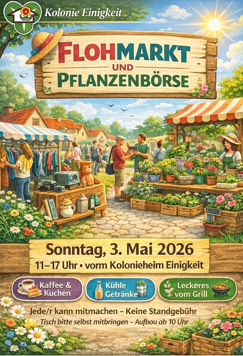 Die Kolonie Einigkeit lädt herzlich zum Flohmarkt und Pflanzenmarkt ein.