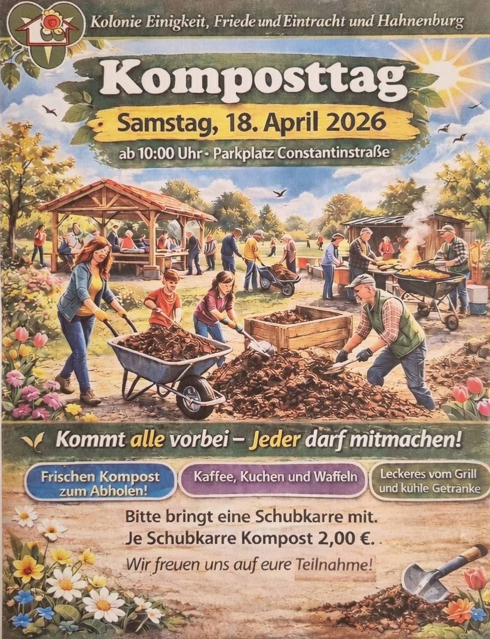 Die Kolonien Friede und Eintracht, Hahnenburg und Einigkeit laden alle Mitglieder und Interessierten ganz herzlich zum Komposttag 2026 ein.